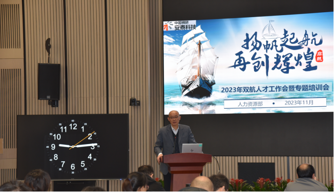 為統(tǒng)籌公司人才隊伍規(guī)劃,全方位為打造人才梯隊,培養(yǎng)一支結(jié)構(gòu)優(yōu)化、有序成長、素質(zhì)優(yōu)良的干部和人才隊伍,公司于11月10日-11日組織召開安泰科技2023年雙航人才工作會暨專題培訓會,公司董事長李軍風、總經(jīng)理畢林生、在京單位分管人力班子成員及80余名雙航人才現(xiàn)場參會。